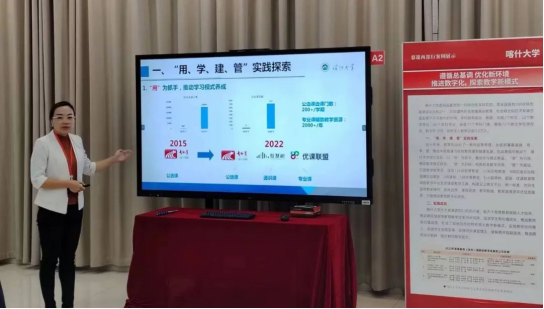 會議期間,我校與北京大學、華南理工大學、東南大學、西安交通大學等八所高校被選中做典型案例展示。我校音樂與舞蹈學院吳亞南老師就“遵行總基調 優化新環境 推動數字化,積極探索教學新模式”為主題,向參會代表展示了喀什大學“學、用、建、管”的實踐探索與實施成效。 會議還發布了《邁向公平之路——慕課西部行發展報告》,成立了慕課西部行工作委員會。