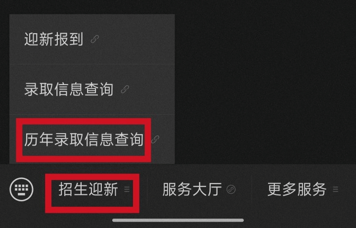 第二步:點(diǎn)擊下底部功能欄選擇“招生迎新”,再點(diǎn)擊“歷年錄取信息查詢”。