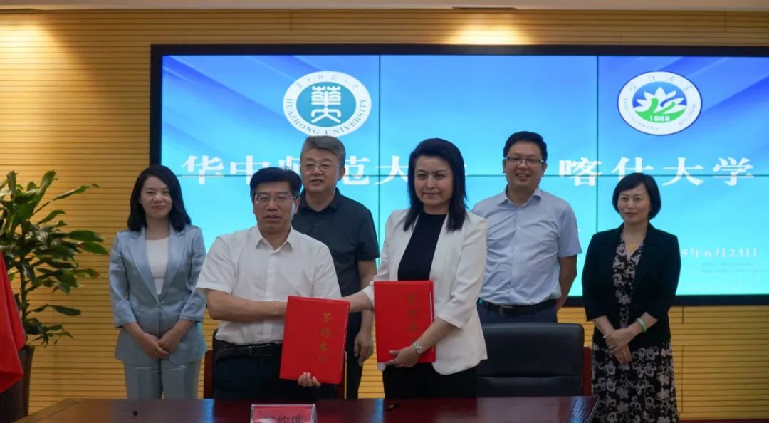 6月23日,華中師范大學黨委副書記、校長彭雙階一行來我校調研交流并簽署合作協議,校黨委副書記、校長帕力旦·吐爾遜陪同調研并座談,校黨委副書記趙斌,校黨委常委、校長助理羅麗華,相關部門及學院負責同志參加座談。