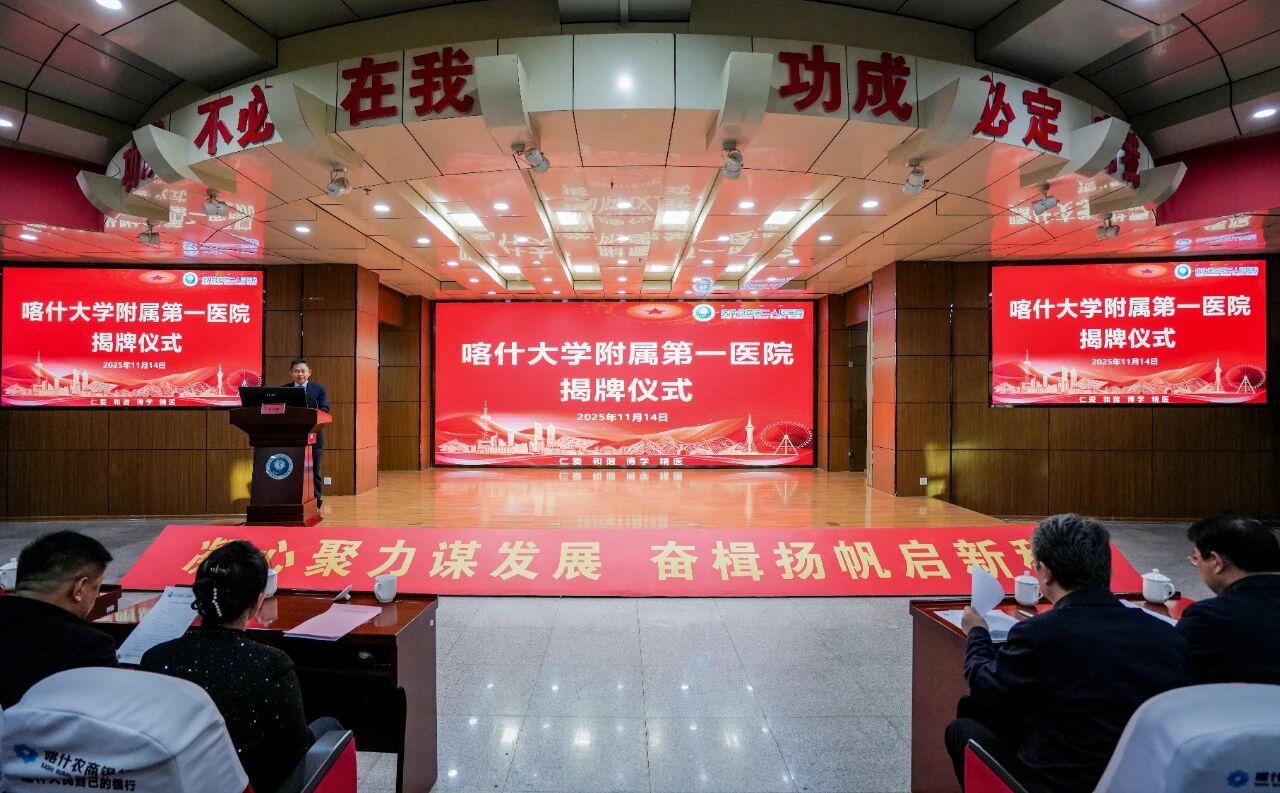 11月14日,喀什大學附屬第一醫院揭牌儀式在喀什地區第二人民醫院舉行,這標志著喀什大學醫學教育邁入“校院一體”發展的新階段,也標志著學校在深化校地合作、推動區域衛生健康事業高質量發展方面開啟了新征程。