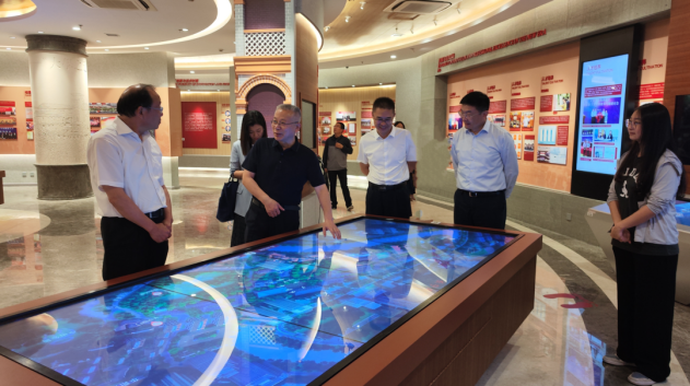 在校期間丁邦文一行分別參觀了“一站式”學生社區、“大數據+創新實驗室”、跨境校際合作國際貿易實戰虛擬仿真實驗、全球貿易檢測分析中心。