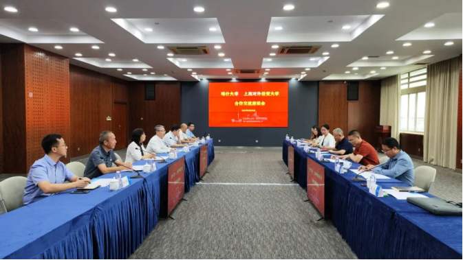 羅浩波介紹了喀什大學圍繞服務國家戰略和地方經濟社會發展,60余年來的建設發展情況。丁邦文對上海對外經貿大學長期以來選派教師支援喀什大學表示衷心的感謝。丁邦文指出,上海對外經貿大學圍繞對外經貿人才培養走出了一條特色發展之路,特別是在文科實驗室建設、智庫建設等方面創新發展,為我們提供了可復制的經驗和借鑒。希望下一步在經濟與管理學院建設、區域國別研究、實踐育人等方面加強合作。