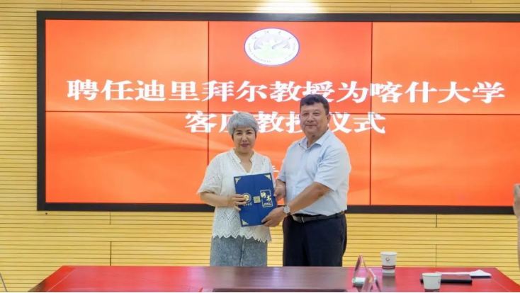 迪里拜爾感謝喀什大學(xué)的認(rèn)可與信任。她表示,喀什大學(xué)作為祖國(guó)最西部的大學(xué),為新疆尤其是南疆經(jīng)濟(jì)社會(huì)發(fā)展作出了巨大的貢獻(xiàn)。喀什是我生長(zhǎng)的地方,作為一個(gè)從喀什走出去的歌唱家,我有責(zé)任用自己的專(zhuān)業(yè)技能為喀什大學(xué)作出貢獻(xiàn)。希望喀什大學(xué)能唱好自己的歌,講好自己的故事,在鑄牢中華民族共同體意識(shí)、促進(jìn)文化潤(rùn)疆等方面多做貢獻(xiàn)。會(huì)上,買(mǎi)買(mǎi)提明·木沙向迪里拜爾頒發(fā)喀什大學(xué)客座教授聘書(shū)。