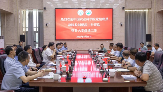 8月15日,中國(guó)農(nóng)業(yè)科學(xué)院黨組成員、副院長(zhǎng)劉現(xiàn)武一行來我校調(diào)研交流。喀什大學(xué)黨委書記丁邦文陪同調(diào)研并座談,在家校領(lǐng)導(dǎo)班子成員和相關(guān)部門、學(xué)院負(fù)責(zé)同志參加此次座談。
