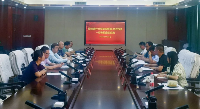 買買提明·木沙一行與新疆財經大學座談現場7月27日上午,買買提明·木沙一行先后訪問了新疆農業大學和新疆大學。新疆農業大學就雙方共同關注的獎學金動態管理、海外基地設立、互換交換生等進行了經驗介紹。在與新疆大學座談會上,雙方分別介紹了留學生辦學歷史、層次與特色,以及2023年留學生招生錄取情況。