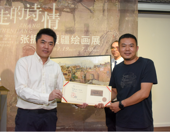 隨后,張振江向深圳美術館捐贈作品,深圳美術館副館長王子蚺為其頒發收藏證書。