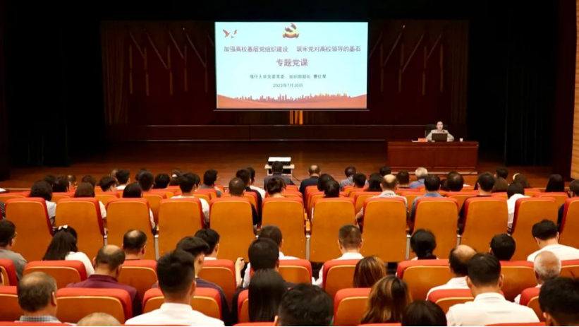 7月10日下午,校黨委常委、組織部部長曹紅琴同志以“加強高校基層黨組織建設,筑牢黨對高校領導的基石”為題講授專題黨課,各級黨組織書記、教職工黨員代表200余人參加。