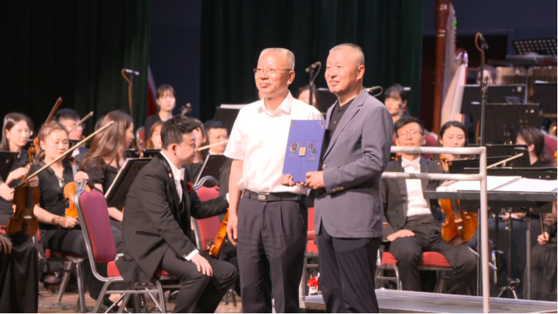 在聘任儀式上,丁邦文為張千一頒發(fā)了聘書,并對(duì)張千一的專業(yè)精神表示敬佩,感謝張千一團(tuán)隊(duì)給我校師生帶來(lái)這盛世音樂會(huì)。希望能以此為契機(jī),提升我校相關(guān)專業(yè)的教育教學(xué)水平和學(xué)生培養(yǎng)質(zhì)量,推進(jìn)文化潤(rùn)疆工程落地生根。