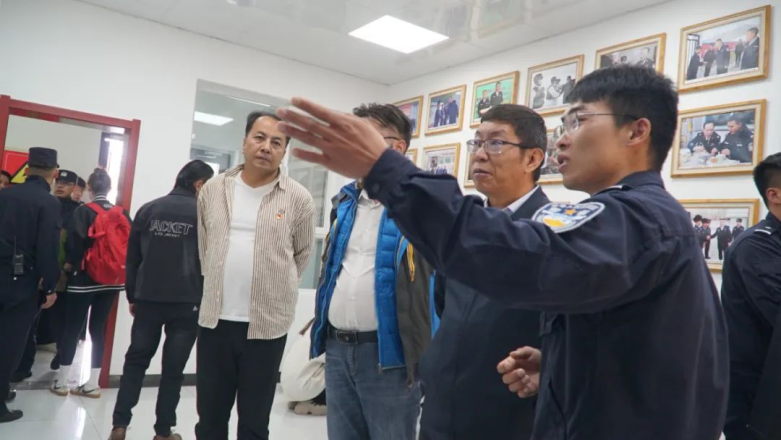 師生一行走進紅其拉甫邊檢站警史館,看到一張張圖片、一段段影像,無數懸于頭頂的錦旗、布滿墻面的榮譽牌匾時,震撼和沖擊迎面而來。當聆聽到一任又一任戍邊民警衛國戍邊的事跡,在場的師生熱淚盈眶。