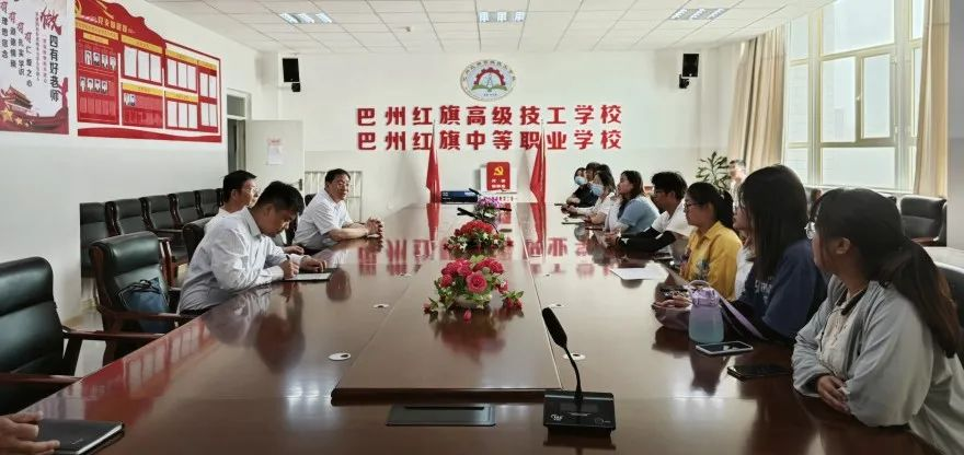 在巴州紅旗高級技工學校,學校負責人帶領郭紹文一行參觀了學校汽修、安保、消防、廚藝等專業學習場地,介紹了學校發展、師資規模等情況并組織在我校11名支教學生與調研組一行進行了座談。郭紹文對學校辦學情況表示肯定,與支教學生親切交談,了解學生學習、工作、生活情況,鼓勵學生認真學習工作技能,為將來求職就業打下堅實基礎。