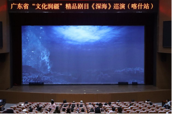 《深海》是廣東省話劇院精心打造的大型原創話劇。在廣東省文化和旅游廳、廣東援疆前方指揮部與喀什地委宣傳部共同推動下,以優質的精品劇目豐富觀眾的精神文化生活,推動文化潤疆工作落實落細。
